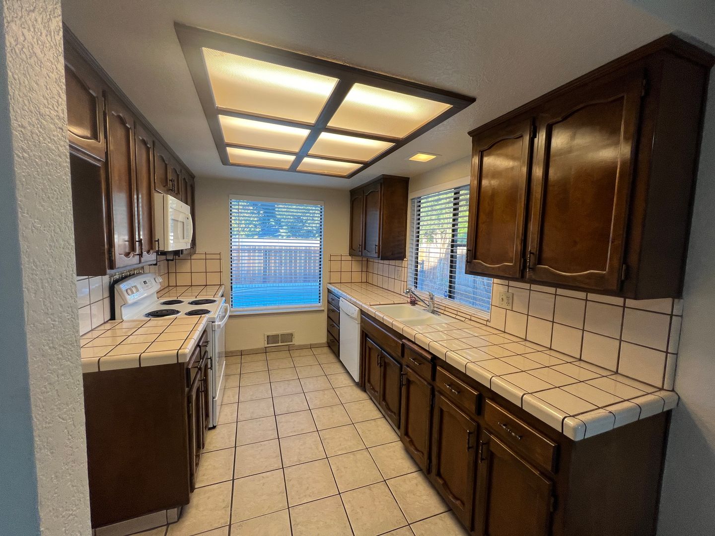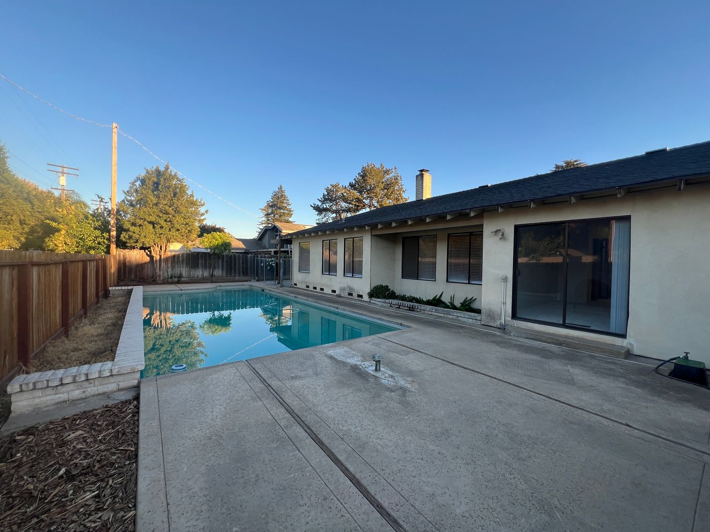 Single story home located in Modesto's Lakewood Elementary School District! Be sure to check out the video tour on our website or YouTube channel. This home feature 3 bedrooms, 2 full bathrooms and approximately 1763 square feet. Tiled formal entry leads to the large living room with ceiling fan and vaulted ceilings. Formal dining room with updated lighting. Separate family room with fireplace opens to the kitchen and breakfast nook area. The kitchen has tons of natural light and features tiled counters, electric range/oven, built in microwave and dishwasher. Closet pantry with tons of storage and in-door laundry with cabinets. Spacious secondary bedrooms. Hall bathroom has updated flooring and tiled shower over tub. Primary suite has TWO closets, new Quartz vanity top and shower over tub. Attached two car garage with automatic opener. Landscaped front yard with automatic sprinklers. Sparkling swimming pool with safety fence. Front yard gardener and pool care are included in the rent. Tenant is responsible for all utilities. Pets are subject to approval with modified rent. $2595 monthly rent with a one-year lease. $2595 security deposit. All persons over 18 must complete their own separate application where there is a $50 non-refundable fee. Please visit our website at HomesbyFivestar.com or call 209-544-9000 for more details.